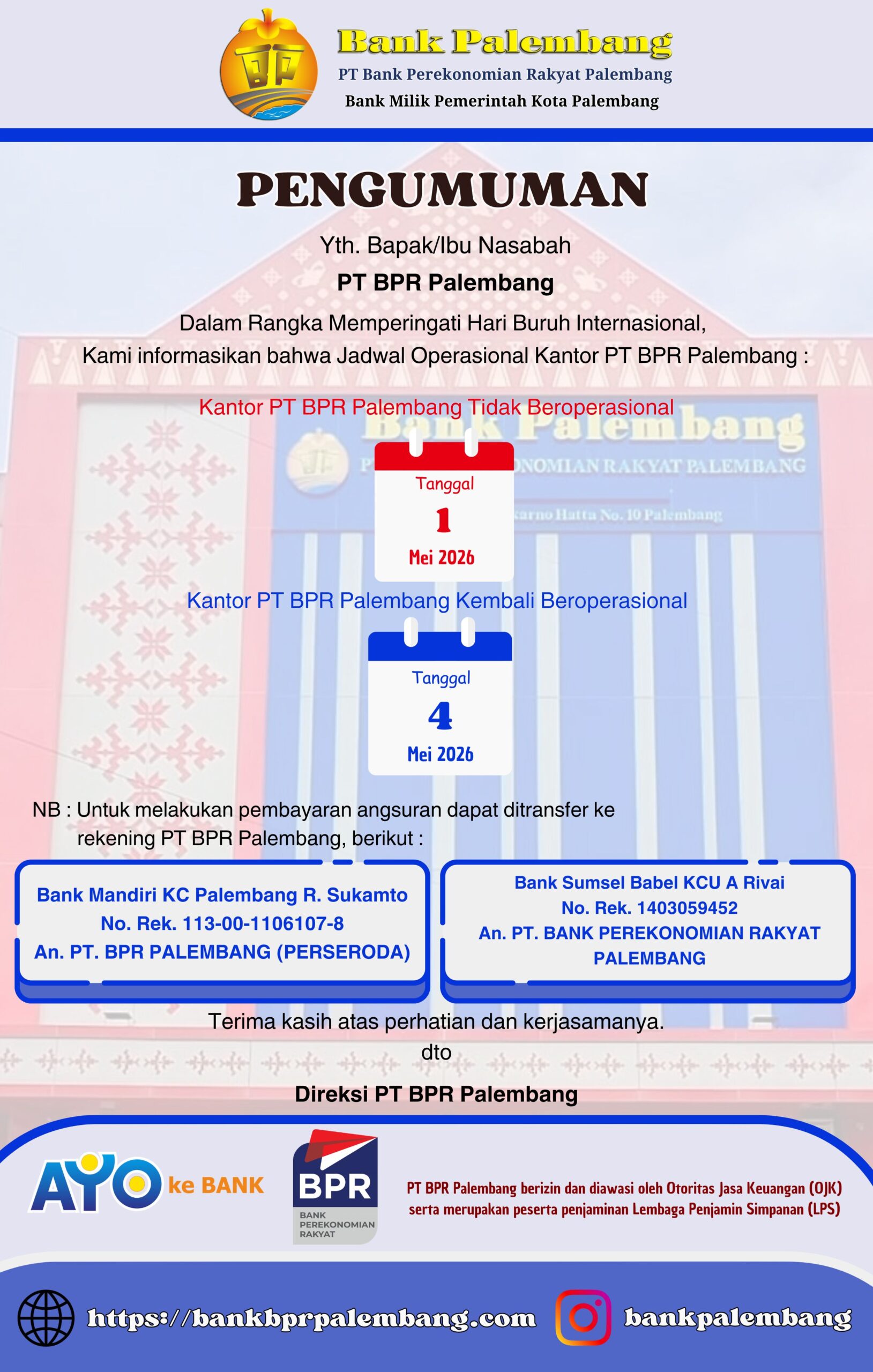 Pencapaian ini adalah buah dari kerja keras dan pelayanan setulus hati kami untuk memajukan ekonomi daerah. Terima kasih atas kepercayaan seluruh nasabah Bank Palembang.